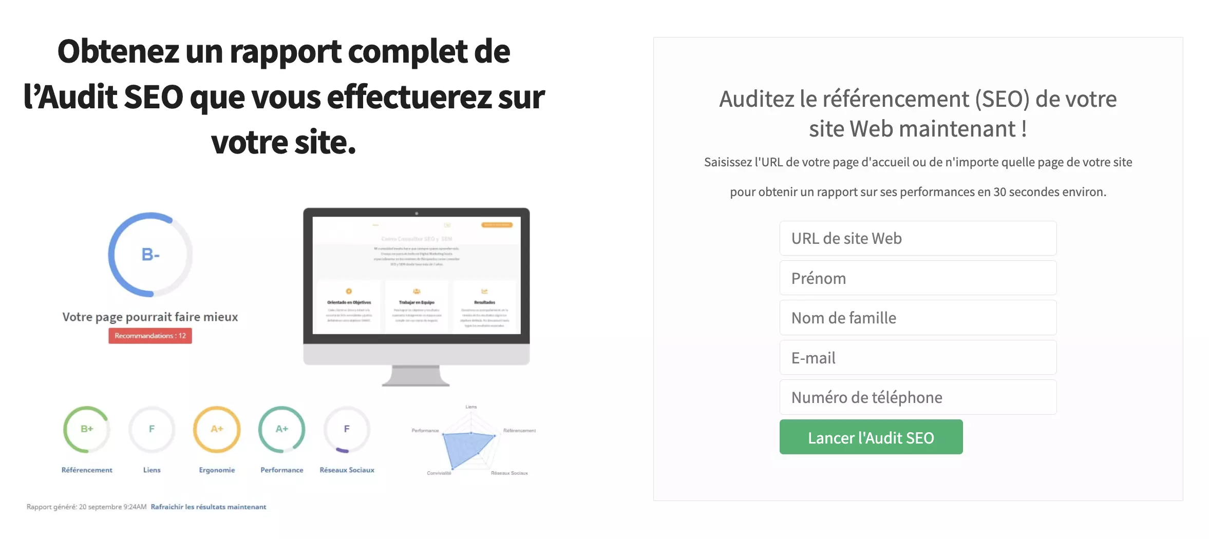 C'est là qu'un audit SEO professionnel peut vous aider. En examinant votre site web en profondeur, nos experts en SEO peuvent identifier les problèmes qui empêchent votre site d'apparaître en haut des résultats de Google. Avec ces informations, nous pouvons vous fournir des recommandations spécifiques pour améliorer votre site web et augmenter sa visibilité.