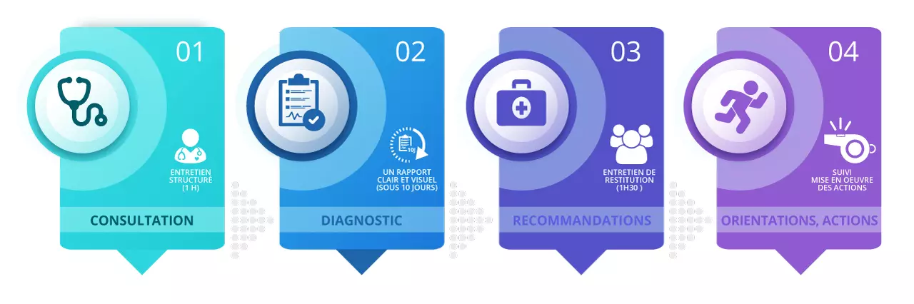 Nous analysons tous les aspects : stratégique, organisationnel, humain, économique et systémique.